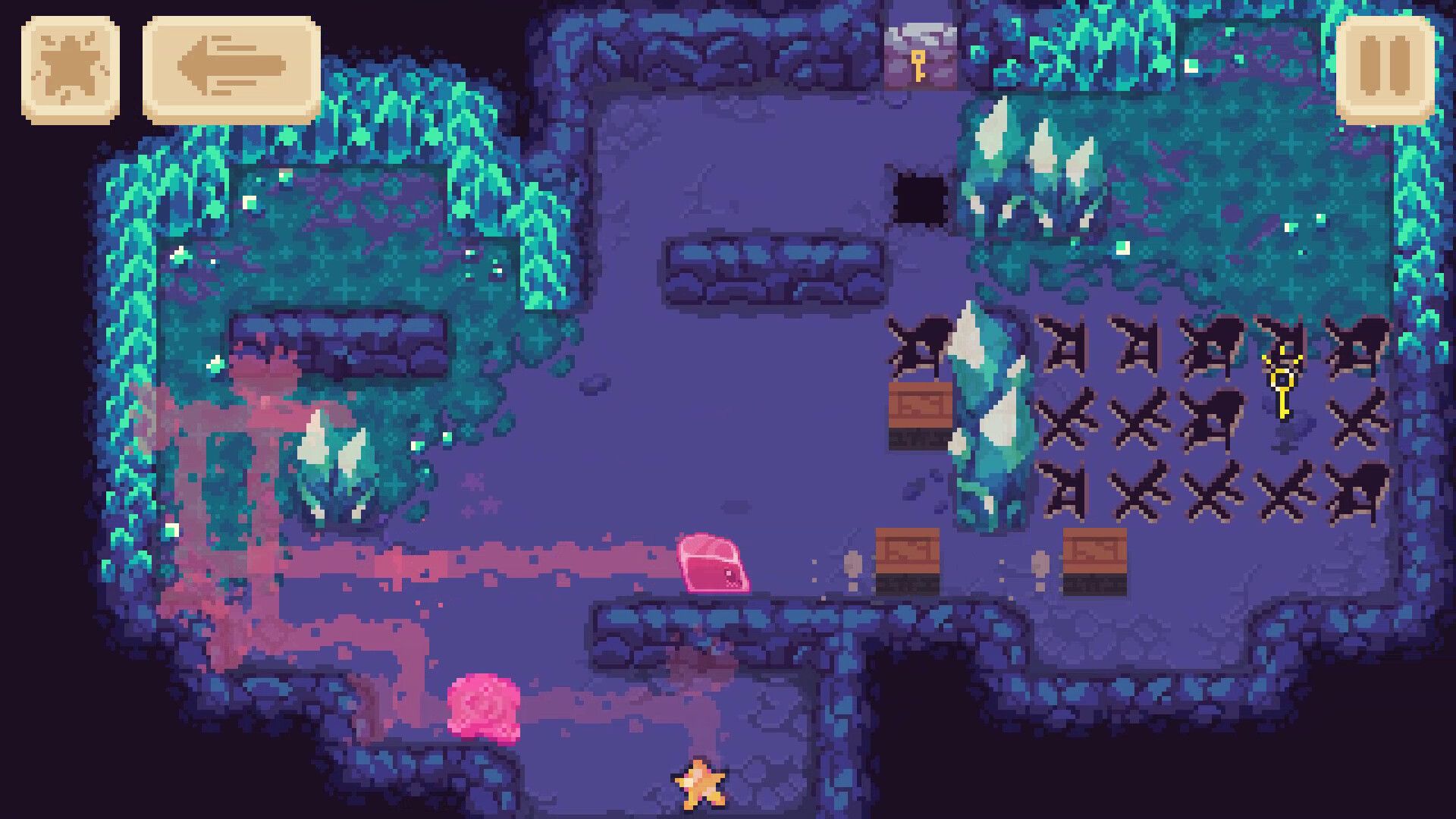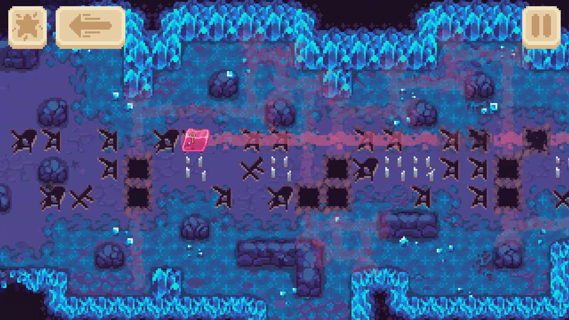 The overworld map is divided into regions, each of which introduces a new game element, such as spikes, sticky ground, and breakable ground, creating more strategy and new perils if you make the wrong move. You unlock the next region when you’ve finished all but two puzzles in the previous region, so you can skip two puzzles per region if you find any of them particularly difficult.