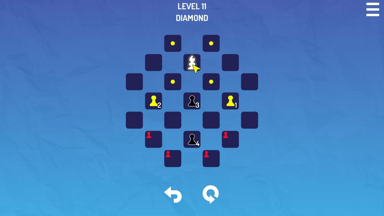 The goal of each level is to push black pieces to predetermined positions while making sure they don't capture all your pieces.