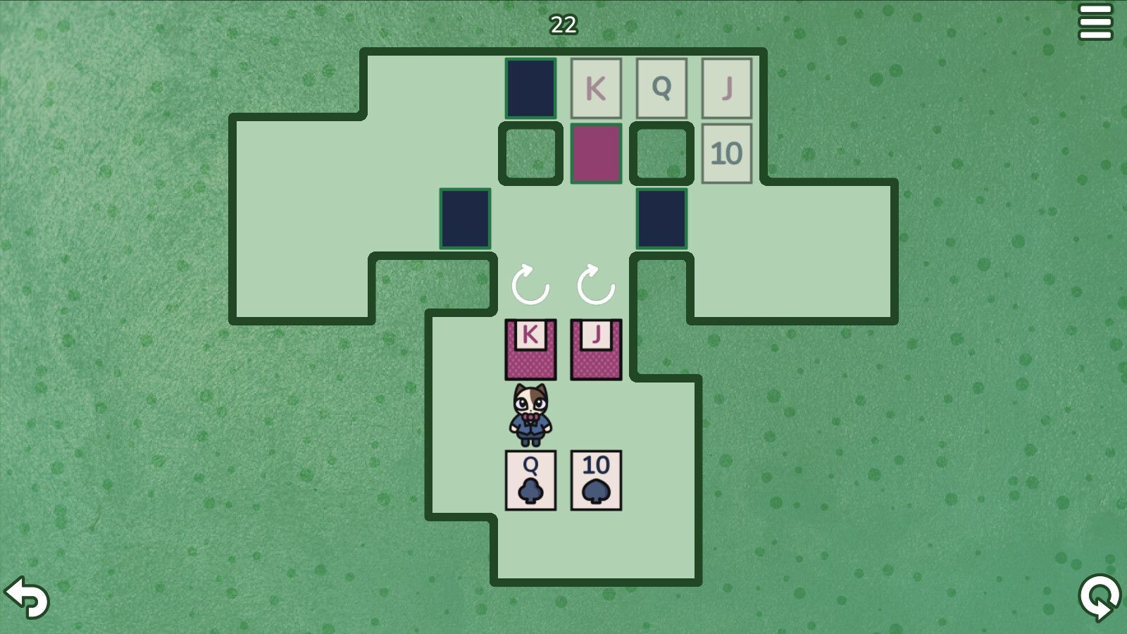 Combining block-pushing with solitaire, push, stack, and flip cards to get them into position.