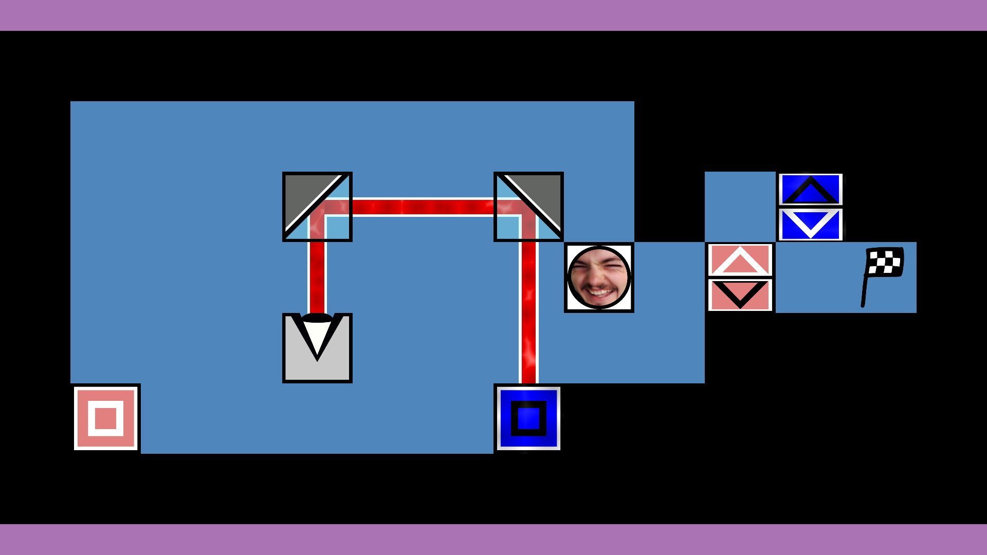 SquishCraft is an abstract block-pushing puzzle game where you play as a block with a man’s face on it, trying to reach a checkered flag. The game gets its name from the ability to squish blocks together and merge them into combined blocks. Don’t be fooled by the game’s unserious art style — the challenges it creates are tightly designed, extremely difficult, and often shocking in just how far they bend the traditional rules of block-pushing puzzle games.