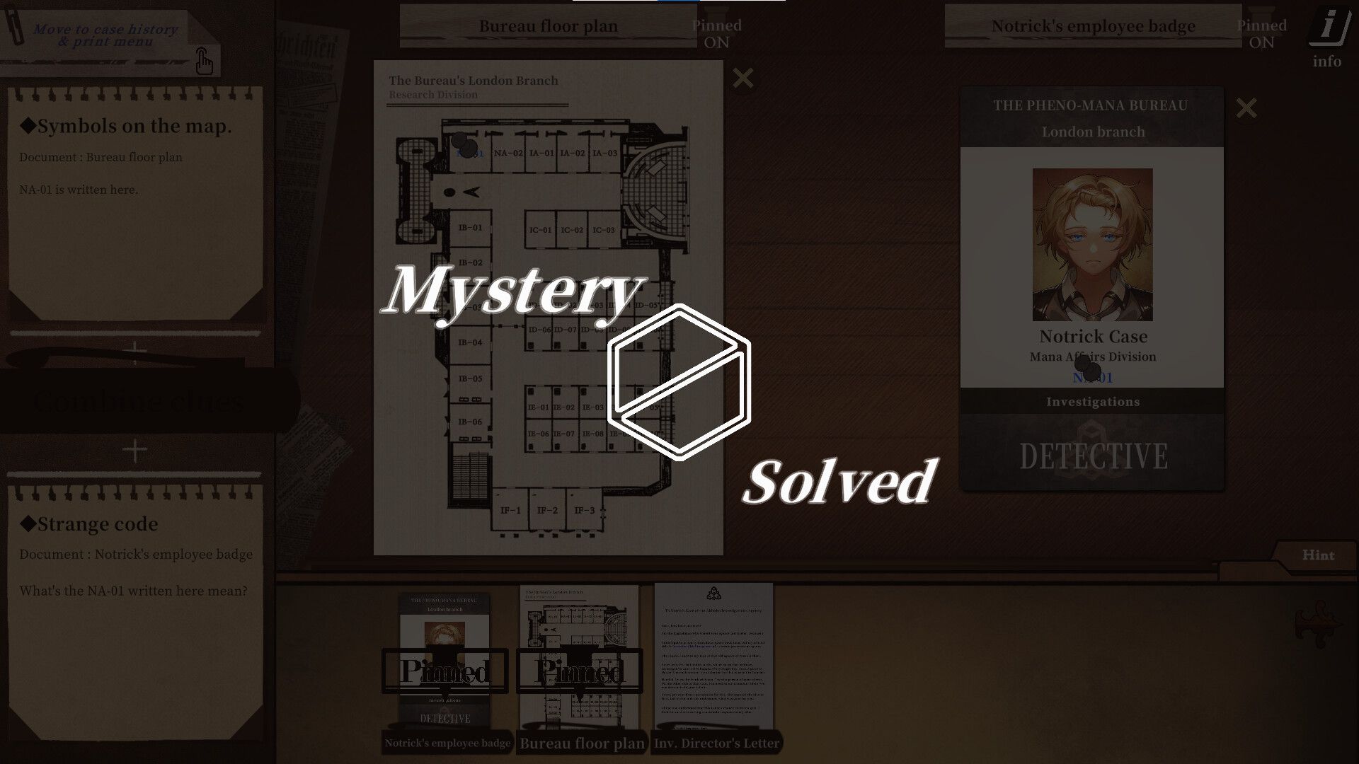 Players take the role of the Mana Affairs Division's newest detective, Notrick, in order to make sense of these incidents. Since the tricks buried within these staffer cases, at their core, revolve around the supernatural abilities of these criminals, conventional investigative methods won't be enough to solve them. Instead, players will have to rely on the documents that explain what their suspects' abilities entail in order to make sense of everything.