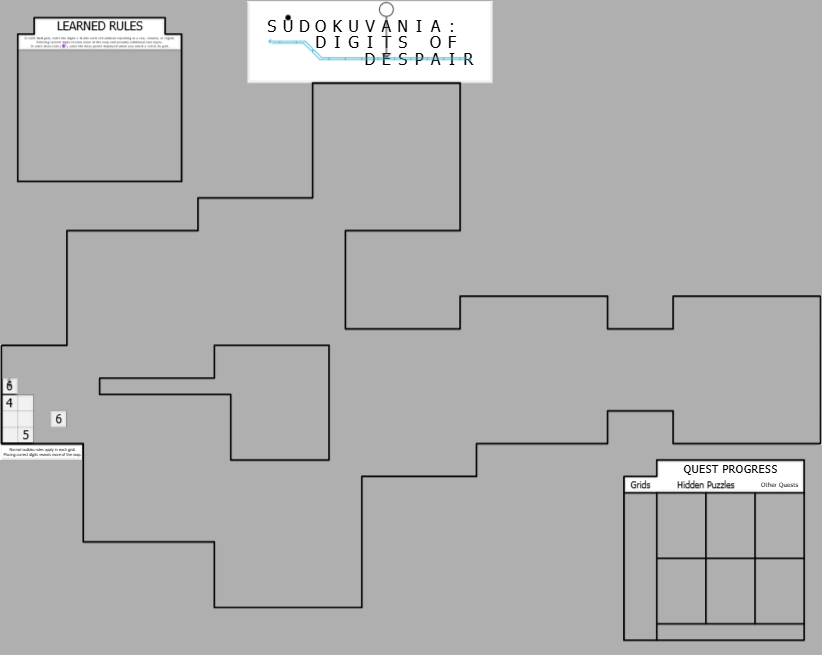 This is a labor of love combining sudoku with my favorite video game genre - Metroidvanias. MVs are known for featuring exploration, gaining new abilities, and difficult boss fights, and I noticed the similarity to grid-based puzzles as soon as I started setting them. So, I present Sudokuvania: Digits of Despair.