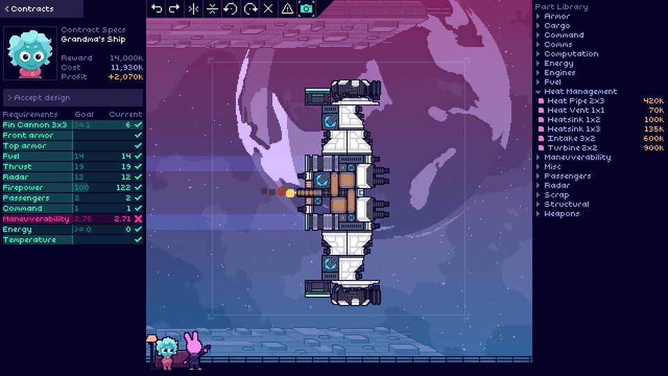 Design spaceships to fulfill contracts from delightful space weirdos.