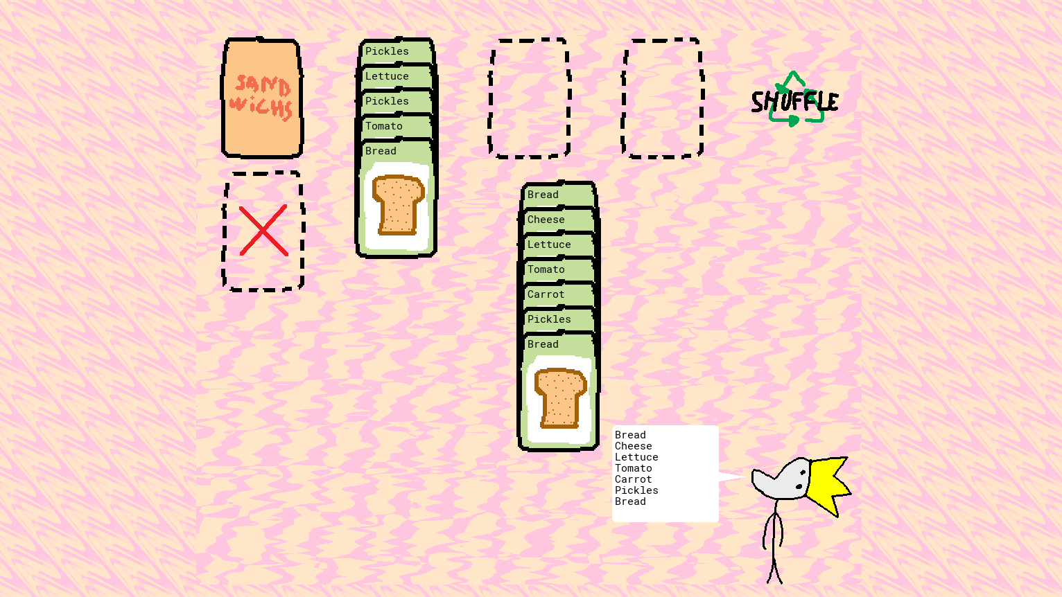Stack up various ingredients to prepare outlandish sandwiches for the Duke.