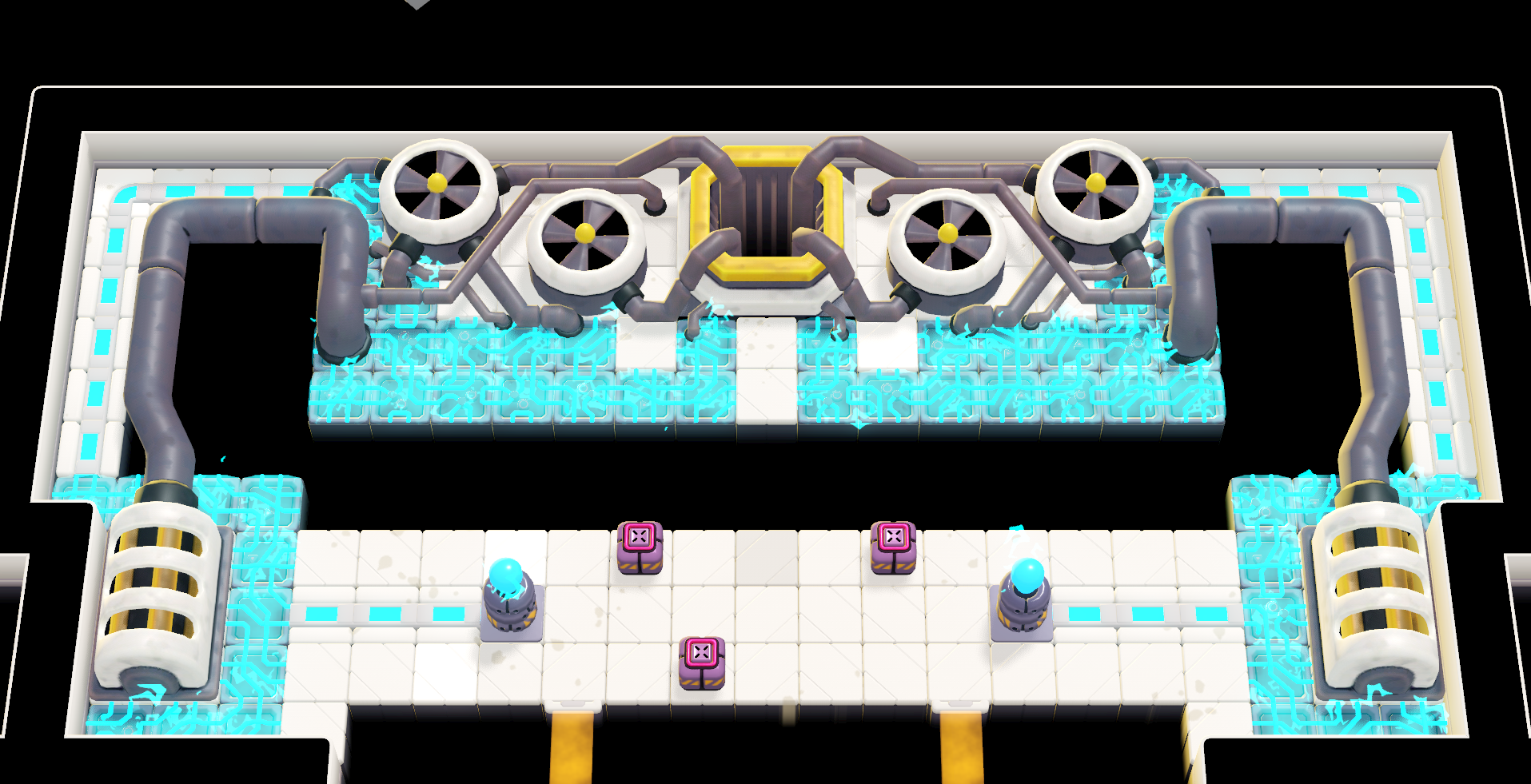 The Electrifying Incident's most important aspect is its interconnected structure. Self-contained puzzles are not the only focus of the game, cubes often need to be carried across several puzzles. An optional ending takes full advantage of the interconnection and the game's reduced space, turning it into one giant meta-puzzle.