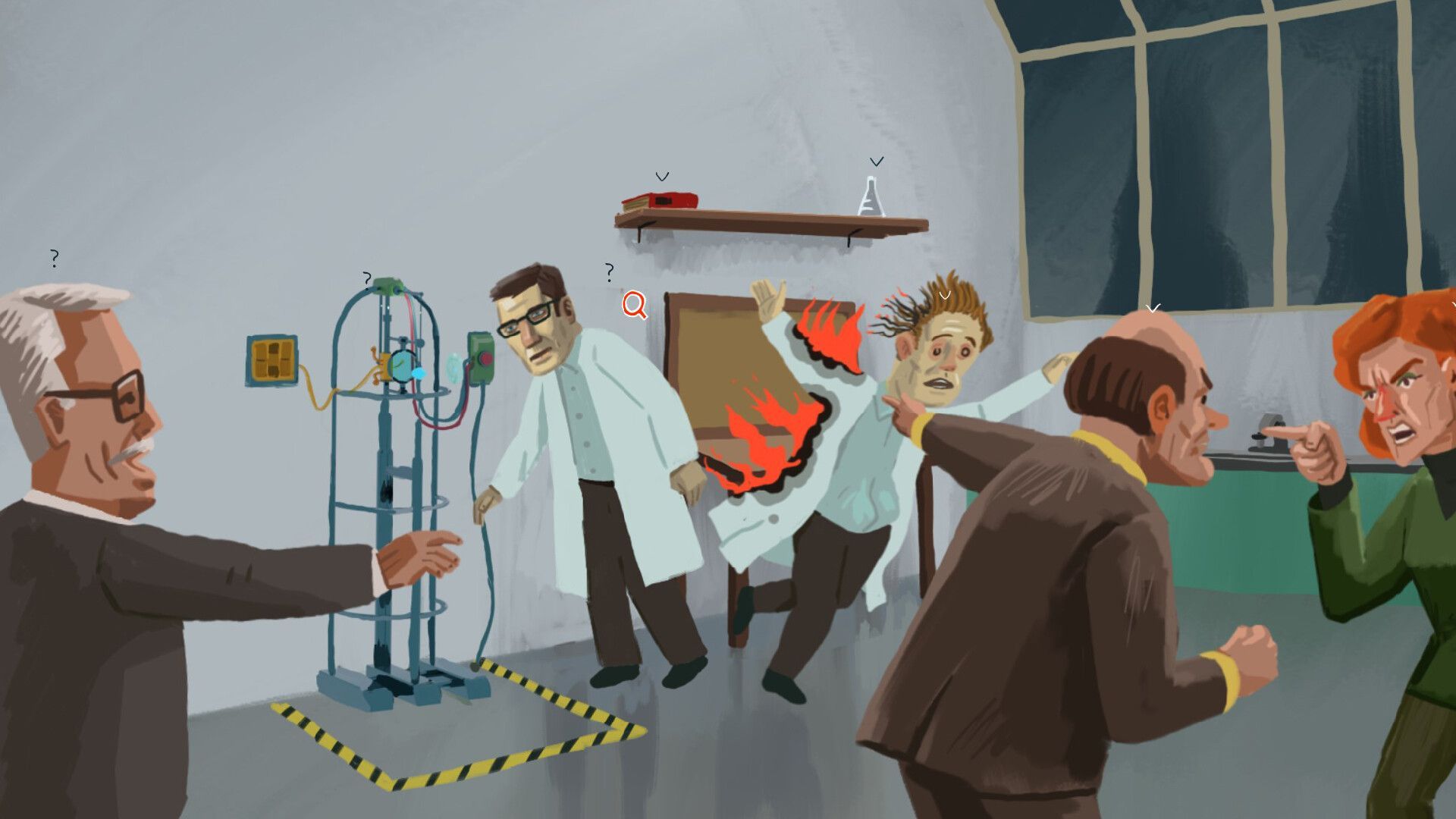 The Rise of the Golden Idol is a sequel to The Case of the Golden Idol; while the plot moved from the 1700s to the 1970s, the gameplay is essentially identical. Each case presents you with one or more scenes depicting a specific moment in time. Within the scenes, you look at evidence (highlighted with question marks so you don’t miss anything important) to get more information on what objects were around, what people were saying as the scene occurred, and any important notes present. You must then use your own skills of deduction and inference to figure out what happened.