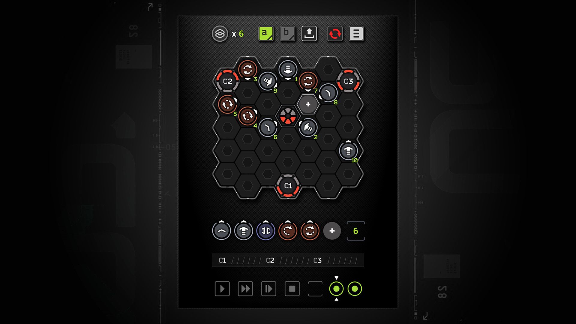 Create moving sequences to bring "Binary Unit" to the destination point. Many levels could be solved in different ways, which allows to improve your results.