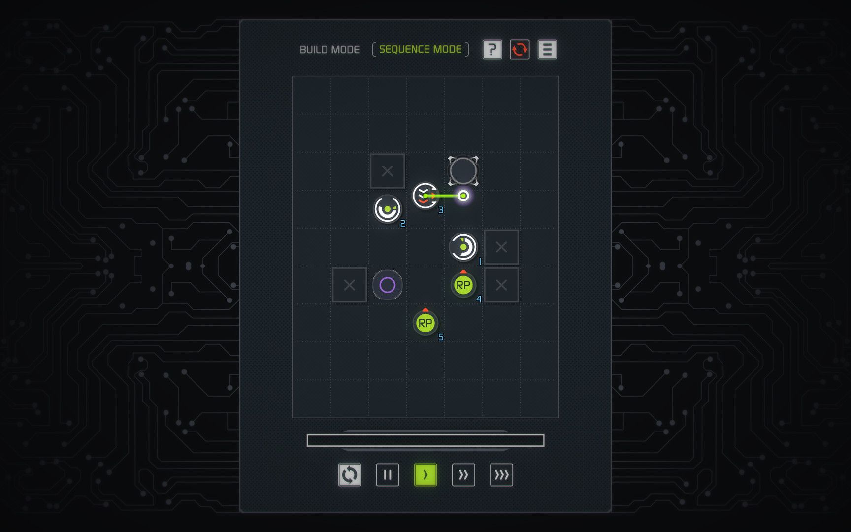 [the Sequence] is a logic construction puzzler. Let your mind be your guide: Lay down seven different kinds of modules as your roadblocks to get you (portrayed as a binary data point) to a sweet destination.