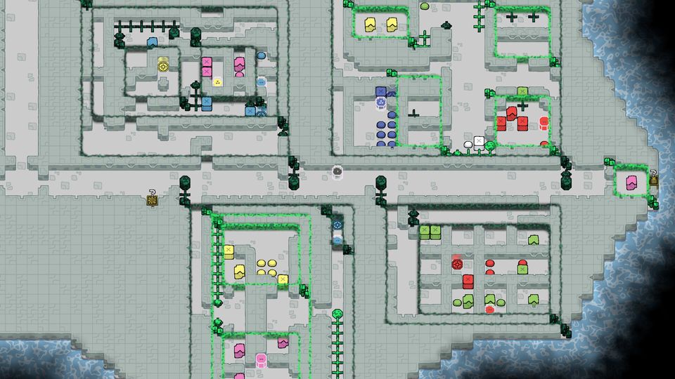 Tutorial (Grass) - This is the starting area, which contains simple toroidal puzzles with blocks, buttons, and gates.