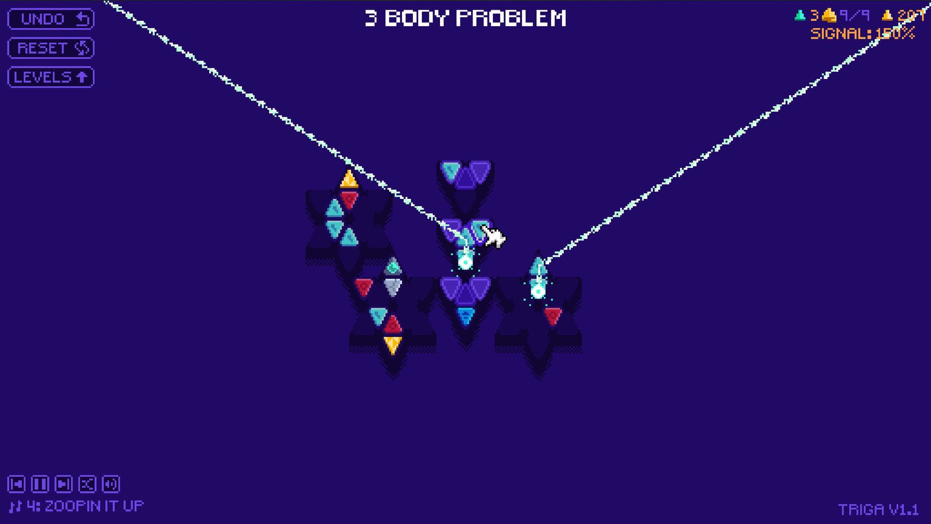 Triga is a funky, out of this world, short and sweet puzzle experience for everyone from casual thinkists looking for a bit of fun, to extreme puzzlists looking for a challenge. The game is go at your own pace and beat with your own style: If you get stuck on a puzzle, you can simply leave and come back later, or continue to advance through other levels that suit your thinky style instead!
