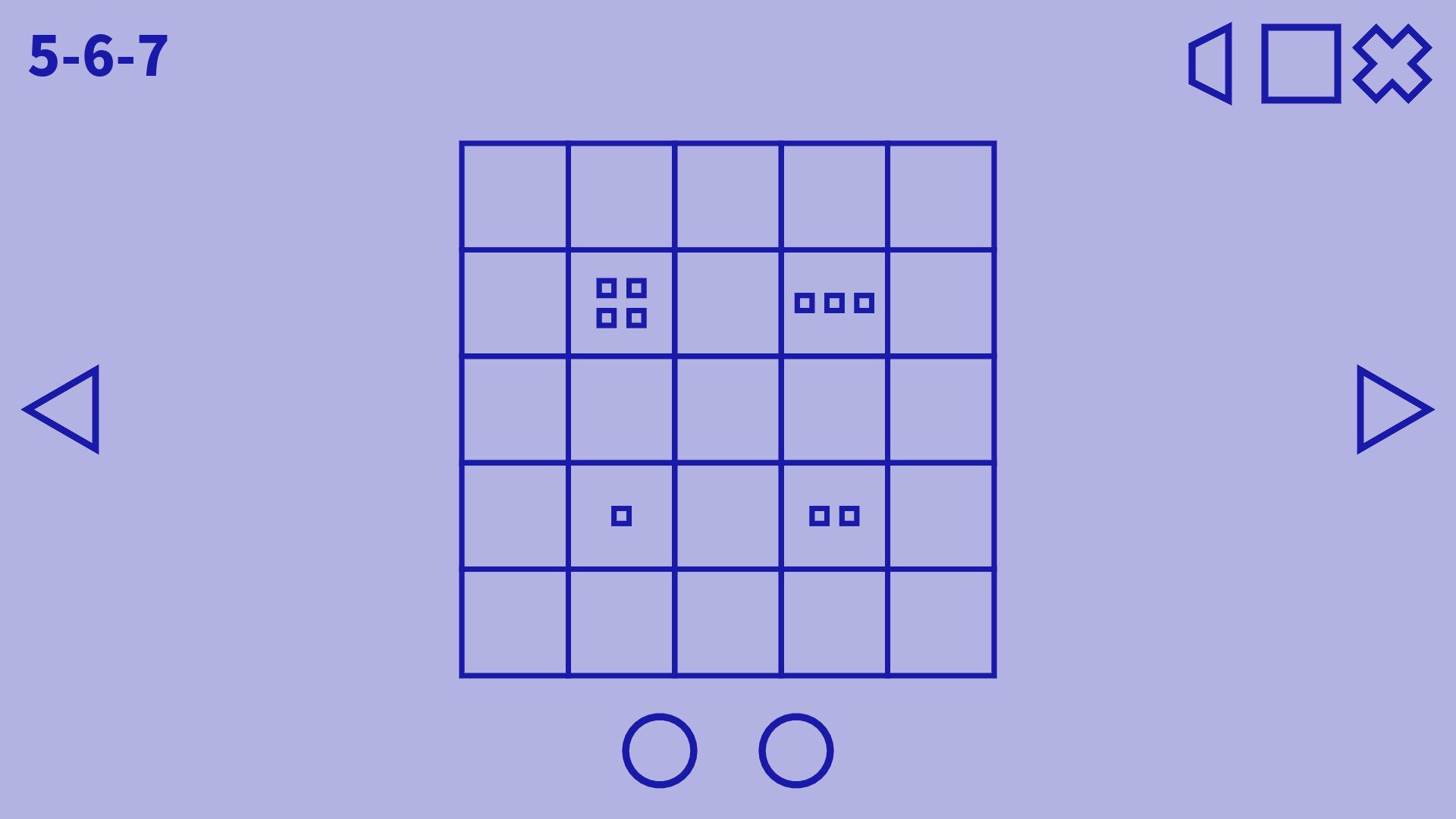 Even though Understand can be tricky, there is often a dotted line already drawn on the first grid to get you started in a set. The main clues, however, come in the form of a few dots at the bottom of the screen. Each dot represents one of the rules in the current set. Depending on the requirements that your current line meets, the dots will be displayed either full or empty. Once all dots are filled in, you’ve completed the puzzle!