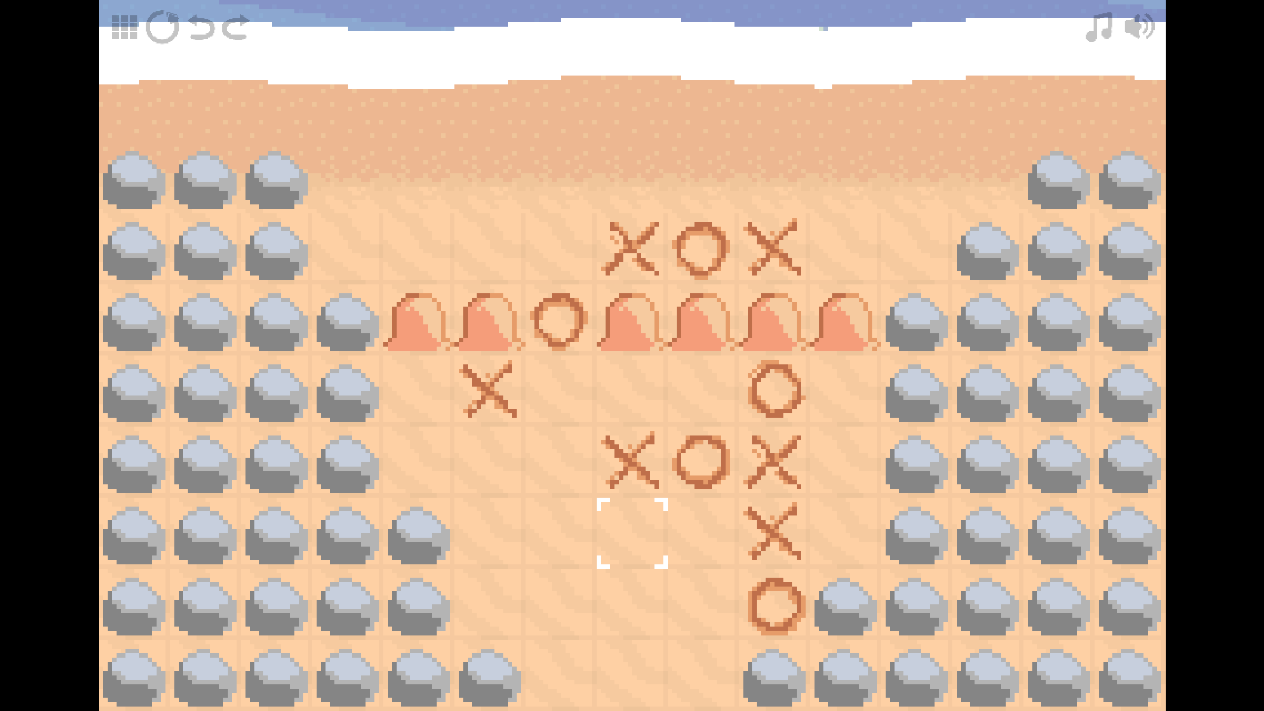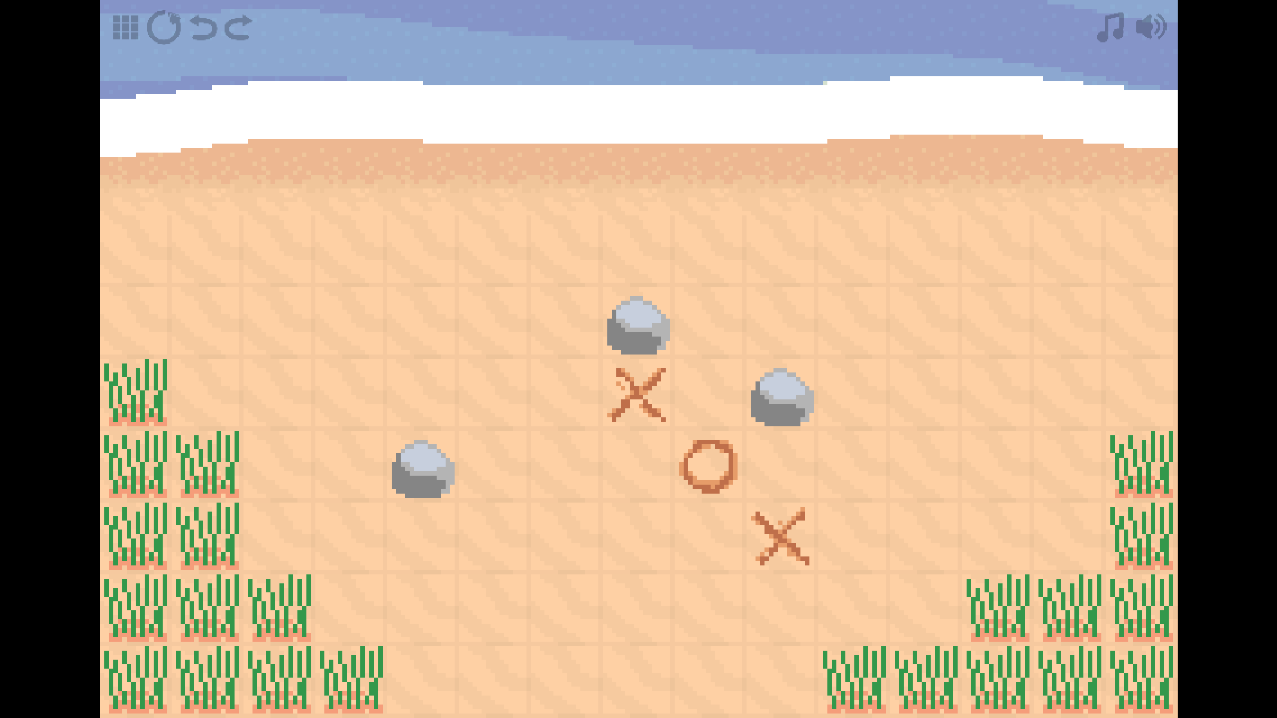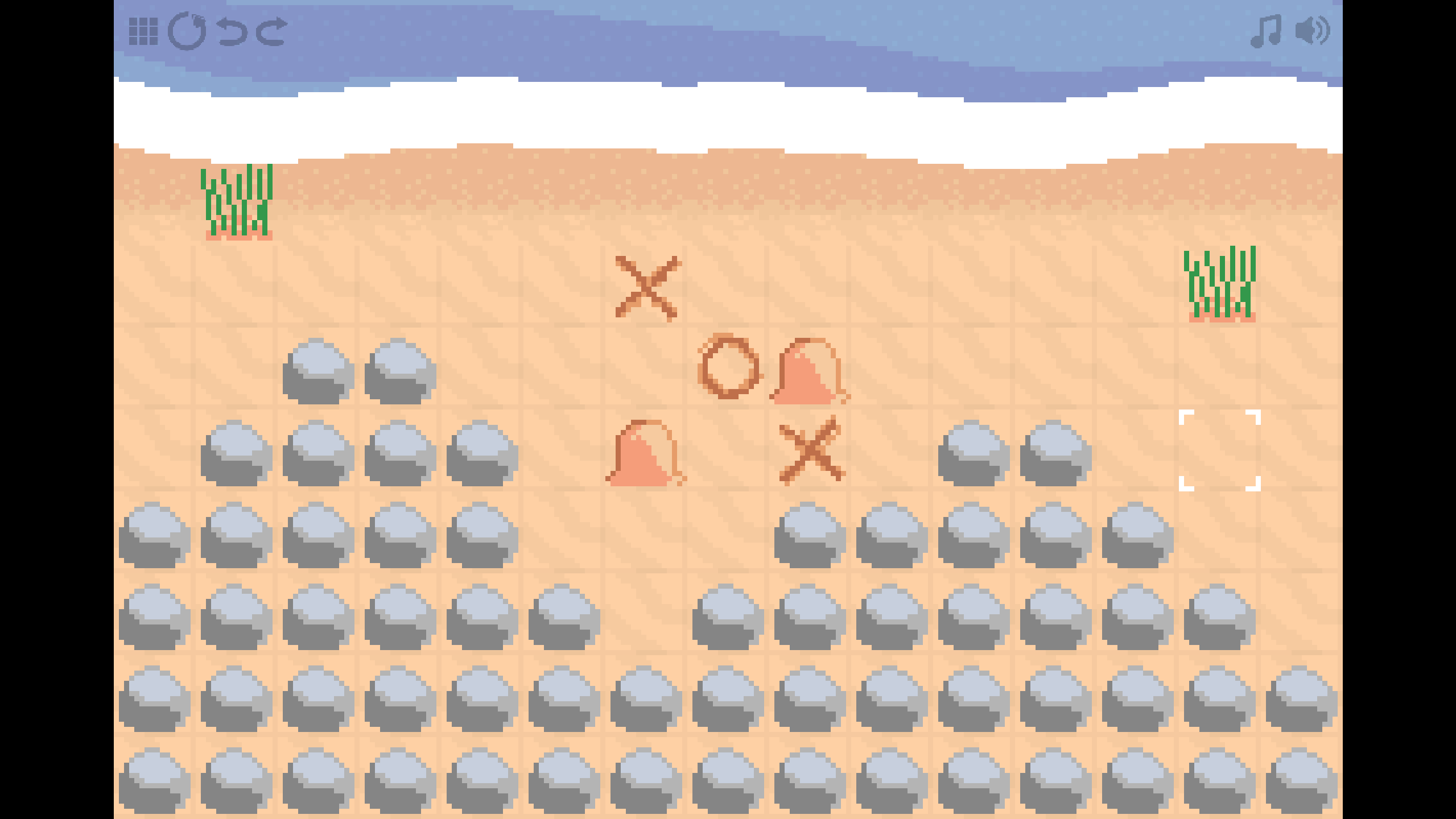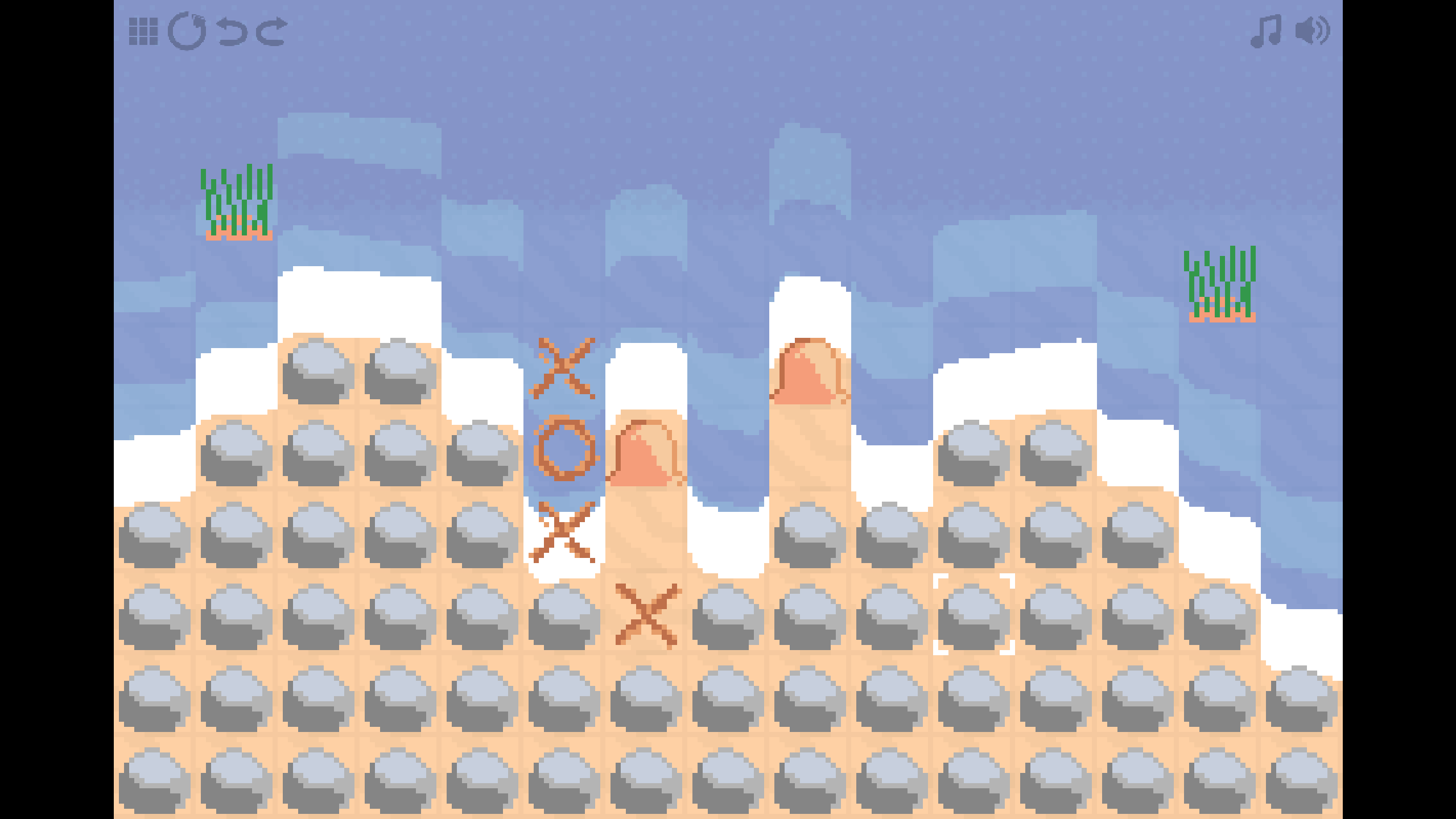 Undertoe is a grid-based puzzle game about playing tic-tac-toe (a.k.a. noughts and crosses) on the beach against an unseen nautical opponent in an attempt to find their hidden treasure. However, the game has major twists on the tic-tac-toe formula which turn each level into a puzzle rather than a strategic battle. It’s short, charming, and free to play, with clever puzzles that constantly iterate on an interesting tic-tac-toe core.