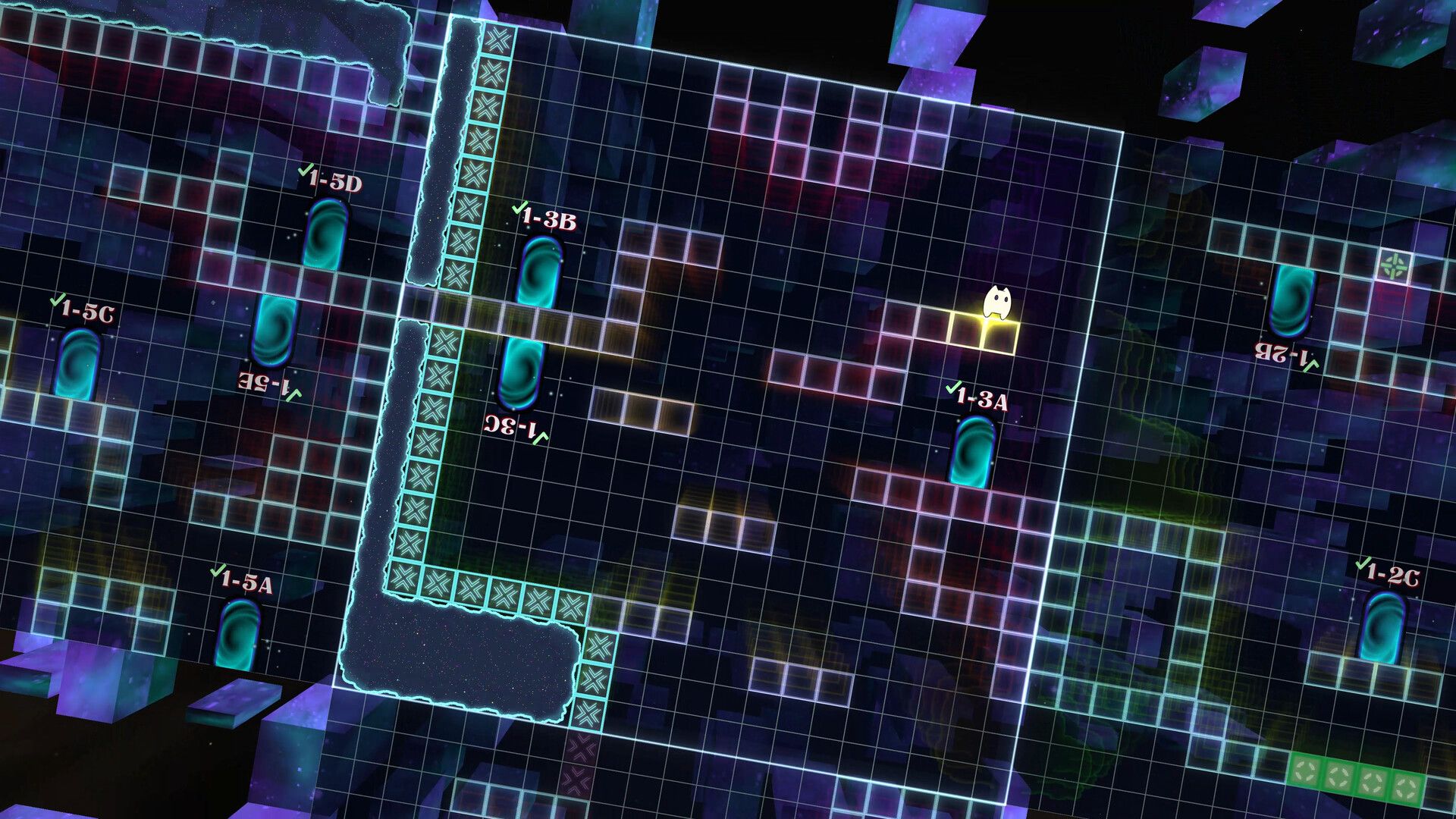 The puzzles are not only constrained to the levels themselves, as the level select screen is itself a confounding space to navigate through, with various secrets and extra challenging bonus puzzles hidden throughout.