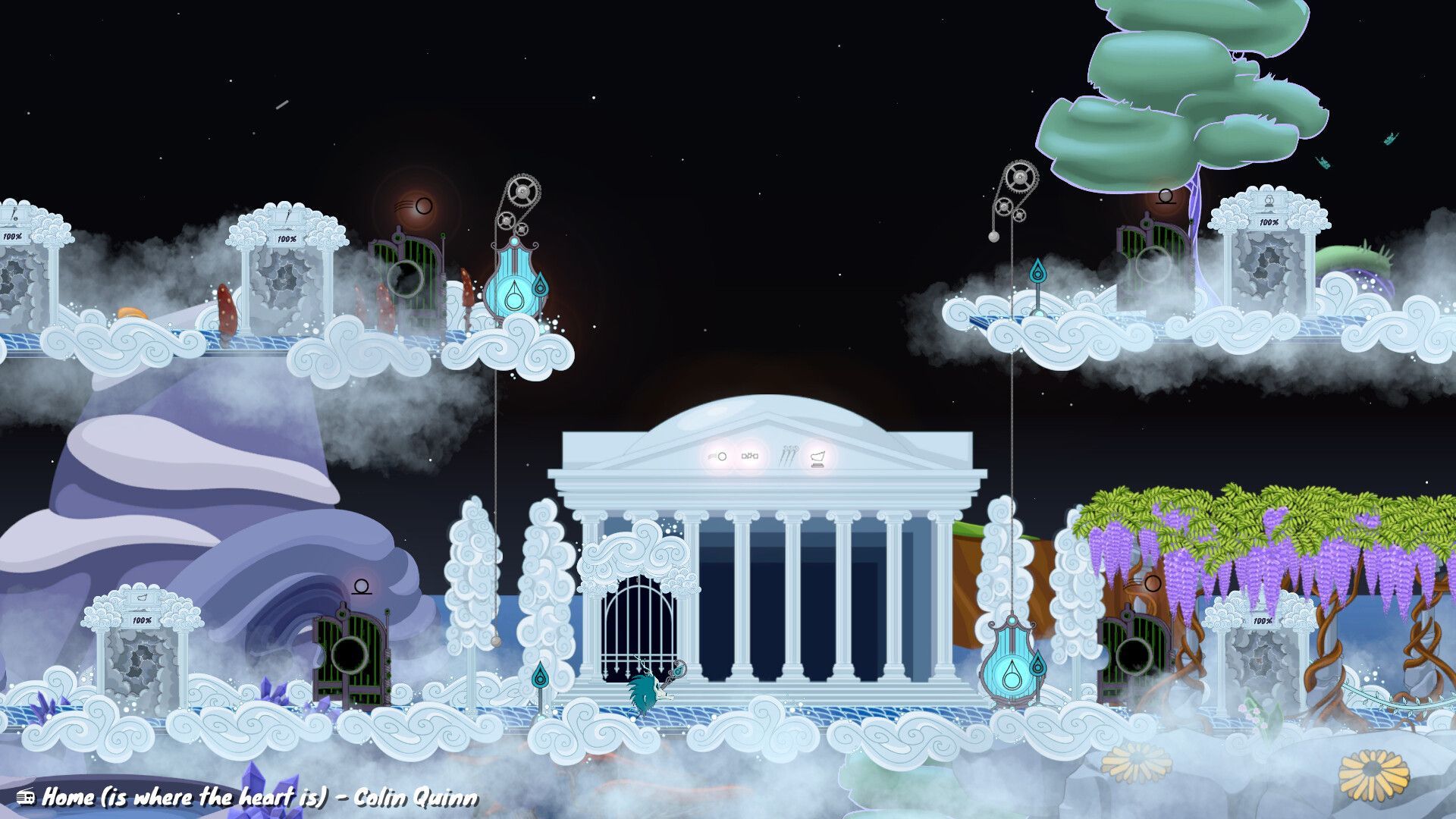 Open gates with colorful orbs and teleport through puzzles in a strange, fantastical world.