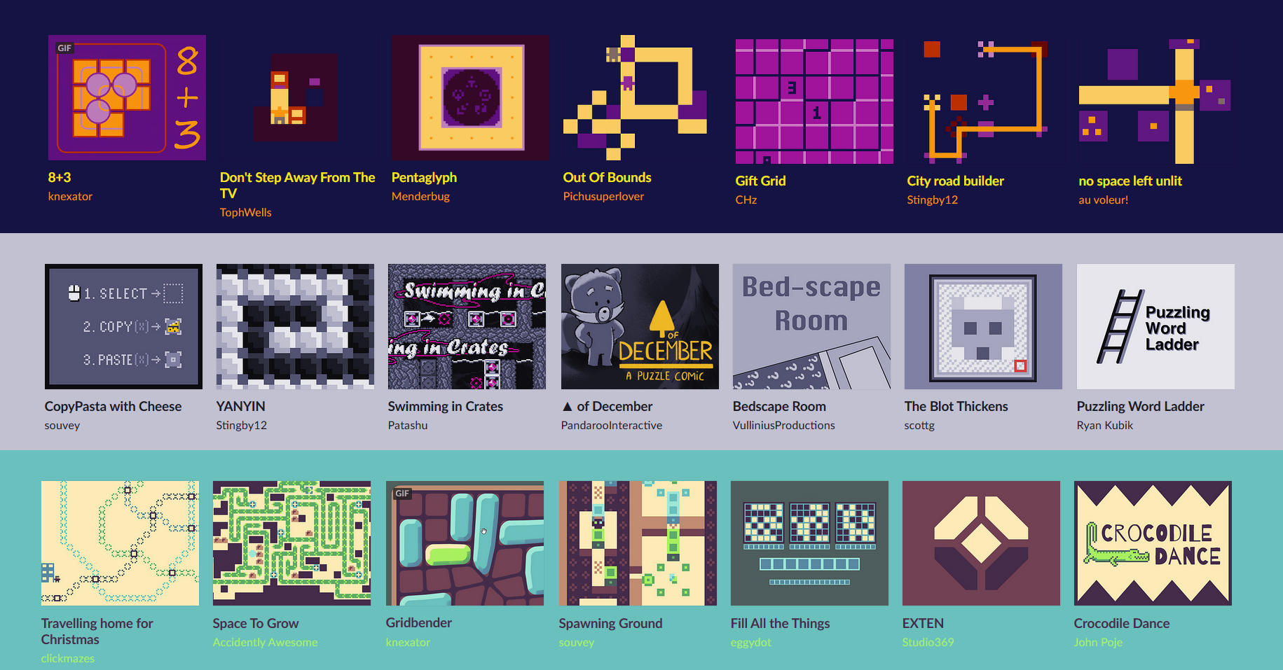 The first game is already up on the page for today, something very cute to start things off. My hope is that this showcase of community creativity will be a fun little treat in your December, where you can check in and spend a few minutes playing something new and surprising.