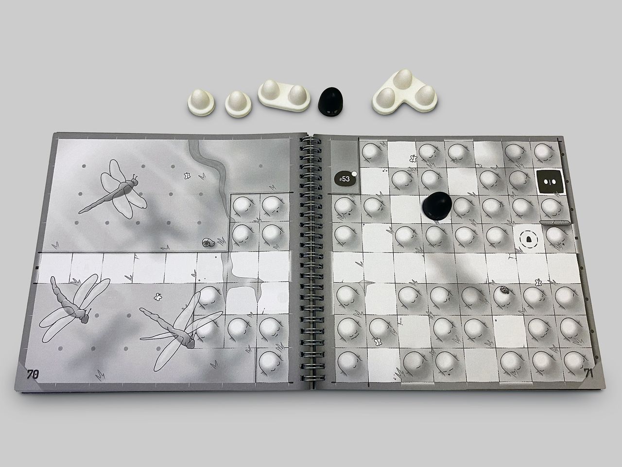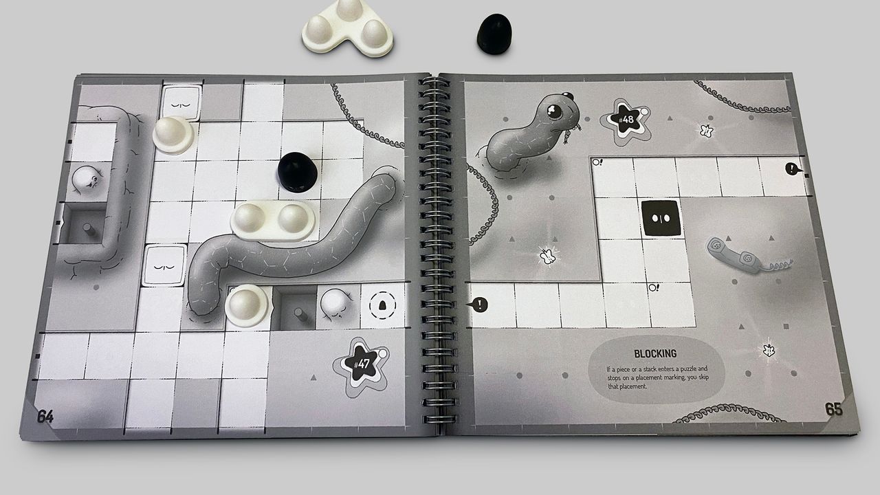 Much of what's going on here we've come to expect from previous works in Blaž's portfolio. A physical, spiral-bound book filled with charming, hand-illustrated puzzle grids and featuring a race of amorphous little creatures that need our guidance. As usual we'll be asked to intuit and discover some of the rules as we play in a delightful process of creating our own eureka moments.