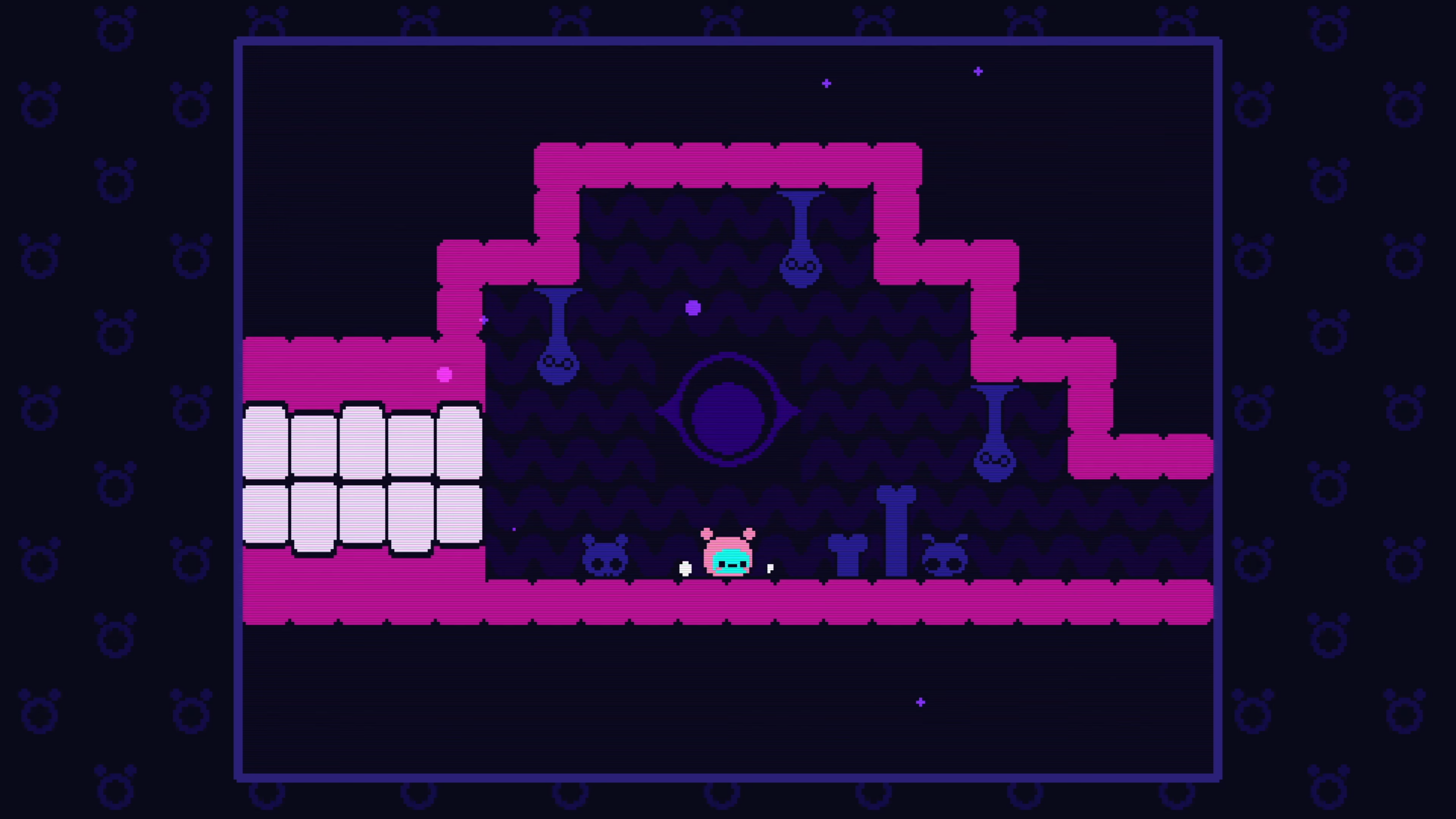 See, what makes many of Öoo’s puzzles puzzling in the first place is how they subvert traditional video game expectations, especially video games of a similar 8-bit aesthetic. For example, Öoo’s old school vibes, combined with the fact its map is divided into “rooms” or “screens”, made me mistakenly presume that pressing the “detonate” button couldn’t affect a bomb dropped in another room—setting me up for a delightful epiphany when I realized it did. Younger, less grizzled players who didn’t cut their teeth on games with memory-limited game states likely won’t make this same misassumption, and thus the “eureka” may whoosh right past them. After all, why shouldn’t you be able to place a bomb in one room and detonate it from another? In real life, objects don’t reset themselves when you leave the room. In summary, much of Öoo’s puzzly joy arises not from some inherent mechanical depth, nor from the purity of its design language, but from the sly juxtaposition of retro aesthetics and modern design sensibilities. Again, your mileage will vary.