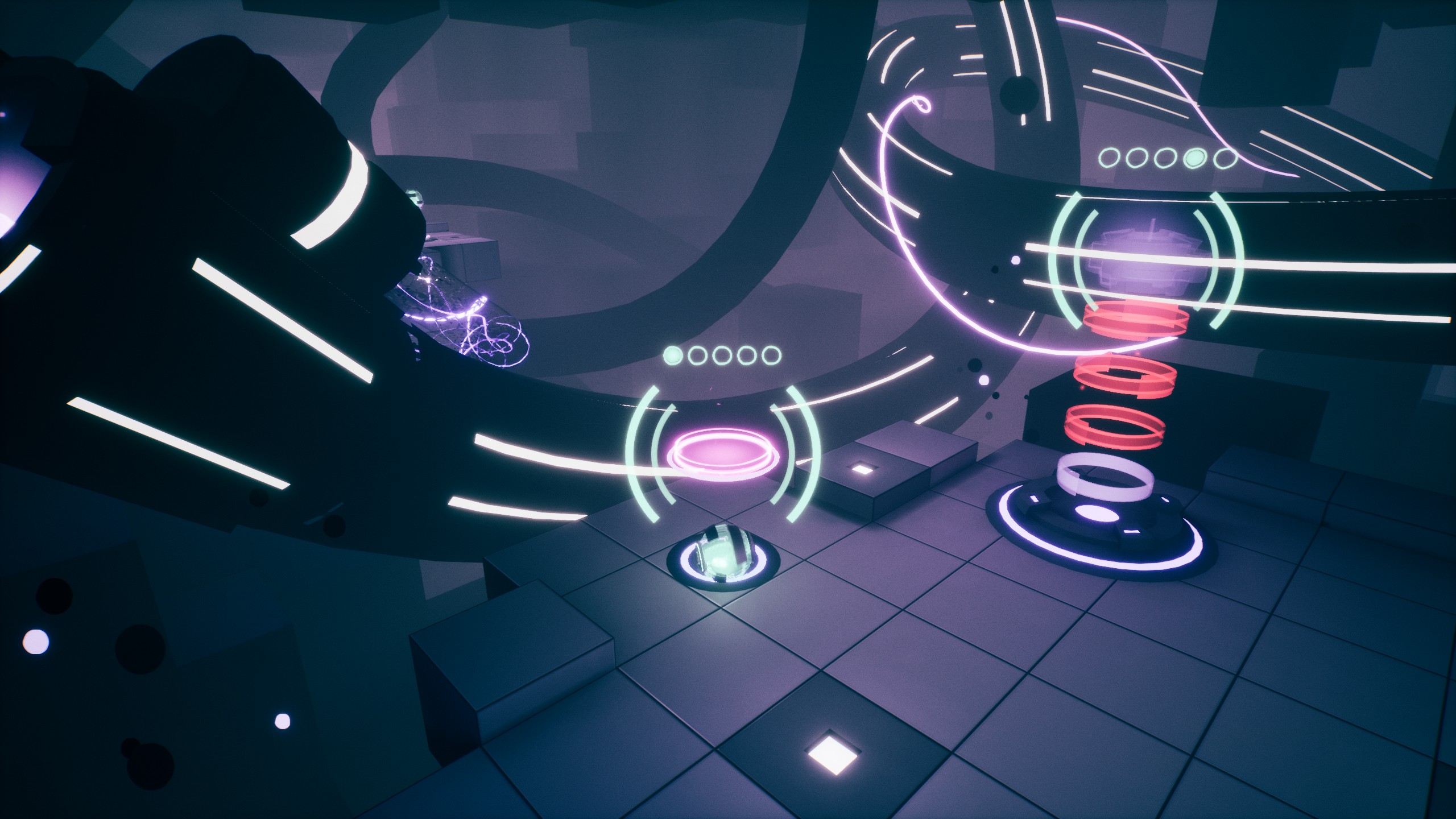 The minimal UI is impeccably designed too, going out of its way to make hard things easy. Orbs roll gently, but magnetically snap into place when their precise location is important. Furthermore, floating glyphs identify key points in 3D space, making specific positions easy to visualize. Small timing indicators make it a cinch to line up all your moves the way you want as well. These niceties don't make the puzzles easy, they just let you focus on solving the puzzle itself rather than figuring out how to execute the solution you've already come up with.