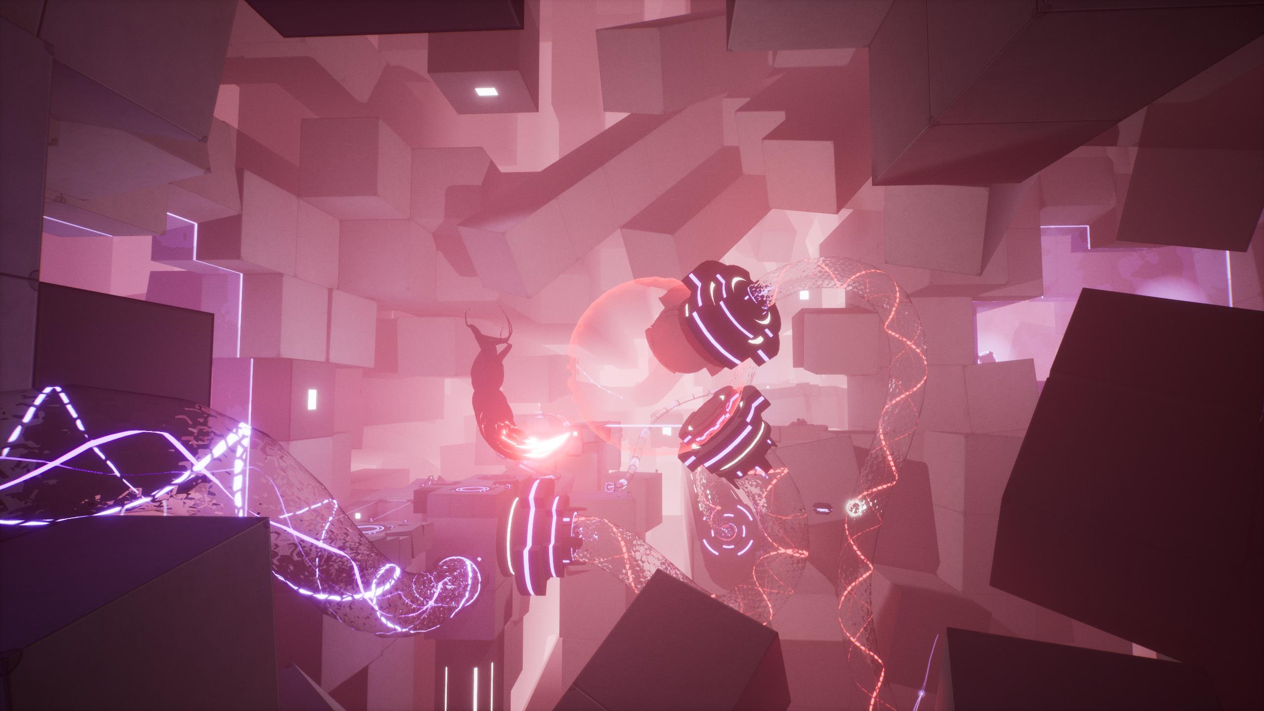 While each level is a discrete room, you roll from one to the next without many loading screens or big intros. That continuous flow makes the occasional cutscenes all the more jarring, yanking control away from the player without warning. Everything was flowing so smoothly, and suddenly I was watching a light show that felt like it should be narratively important, but which didn’t offer any explanation or real direction.