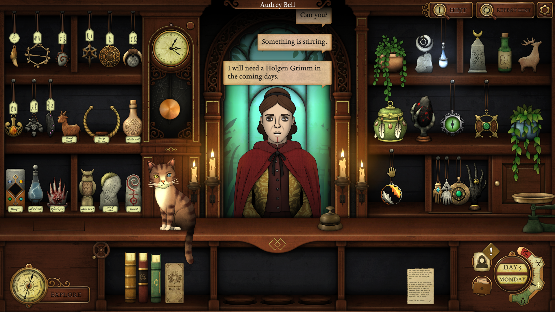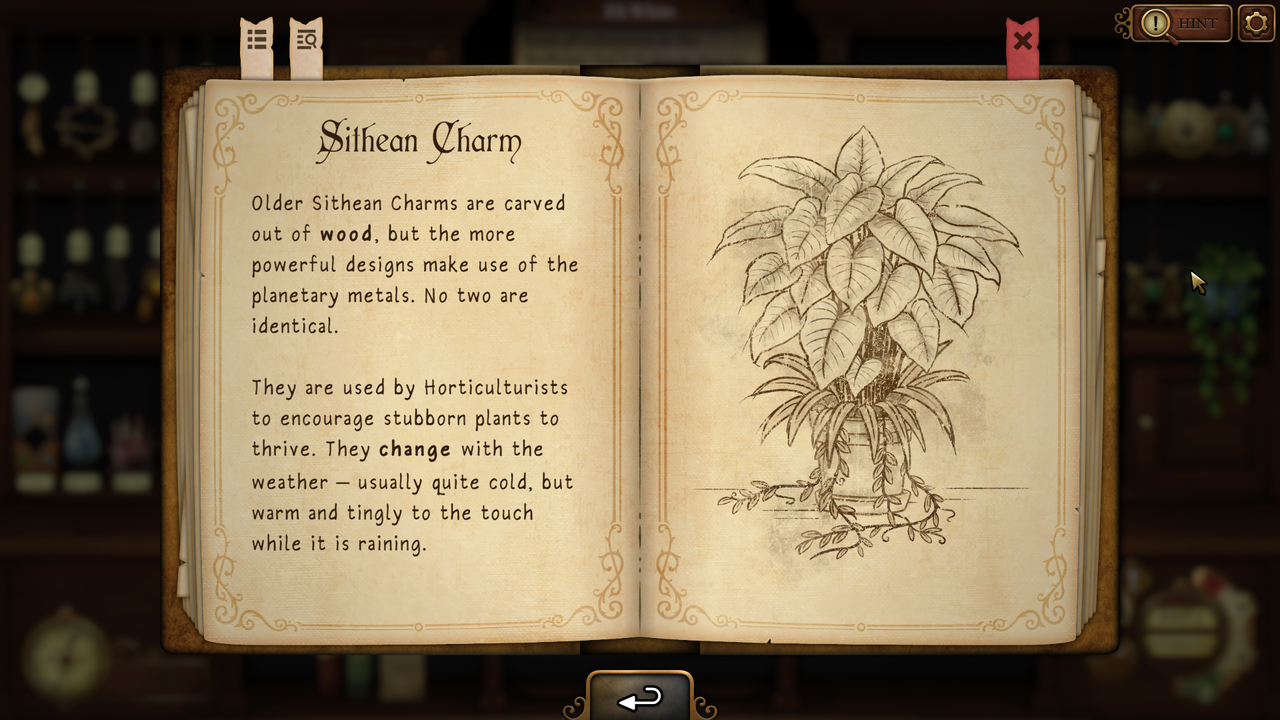 Strange Antiquities is a game of investigation and identification: armed with a big old book and the reassuring presence of a cat, you must identify each of the strange trinkets in the store, handing them over to the locals to cure their woes. It's a direct follow-up to Strange Horticulture, taking place several years after the events of its predecessor.